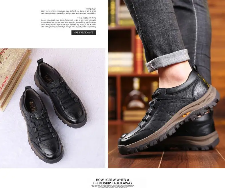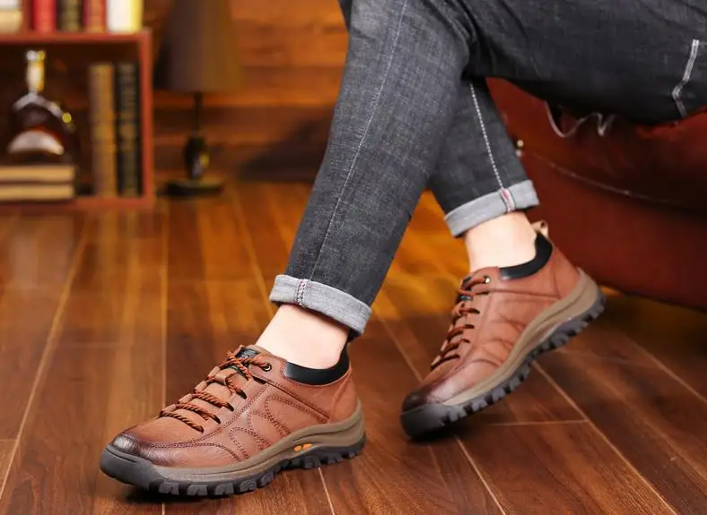 Brand New Men Casual Shoes Spring Split Leather Thick Buttom Wear-resistant Shoes British Style Men's Fashion Sneaker Shoe