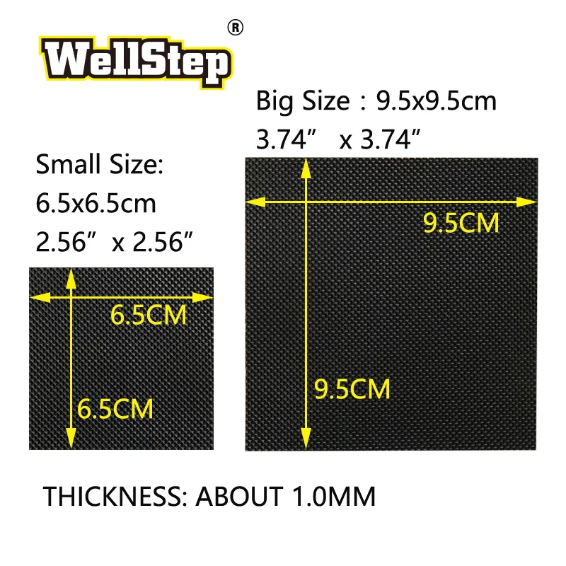 Description:Shoe heel protection padMaterial:Rubber+ Double sided tapeColor:BlackSize: Small size 6.5x6.5cm Big size 9.5x9.5cmThickness:about 1.0 mmFunction:Protects the leather heel from wear and increase the slip resistance of the heelApplicable: leather heel and smooth heel for men's and women's shoesInstruction to use:1.Put the heel on the heel pad and draw the contour of the heel along the edge of the heel.2.Use the scissors along the contours and slowly cut out the heel pad with the same shape as the heel.3.Clean the surface of the heel with a shoe cloth.4.Apply the adhesion promoter to the heel surface and wait for a while to dry. New shoe heel may not use the adhension promotoer.5.Tear off the tape paper on the back of the cut heel.6.Attach the heel pad to the heel and press it hard for a while.7.Use scissors to cut off the excessportion of the heel pad.8. Keep shoes for several hours before using.Notice:1.Replacement of the heel sticker: Please use the hot air of the hair dryer to heat the glue, so that the glue slowly softens,then slowly tear off the heel pad, Do not tear directly to avoid hurting the heel surface.2.Use of adhesion promoters: New shoes generally do not require the use of adhesion promoters. The worn heel can be used with an adhesion promoter.The adhesion promoter itself has no stickiness and mainly increases the stickiness of the backing adhesive The adhesion promoter has a certain smell and it is recommended to use it in a ventilated place.3.This product is suitable for smooth leather heels and other smooth heels, its not suitable for deep embossment heels or uneven heels.4. Keep the products out reach of the children.