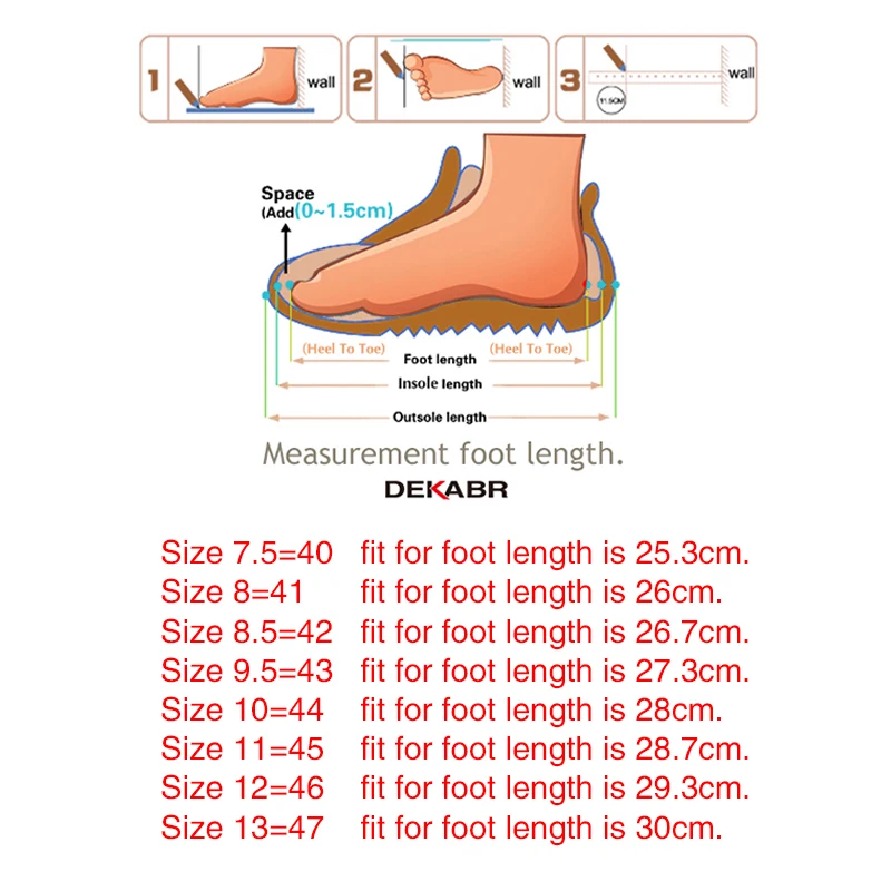 DEKABR Winter Genuine Leather Men's Boots Thick Fur Warm Ankle Boots Working Men Footwear Waterproof Snow Boots Plus Size 40~47 Hi,Dear value customers! we advising you can choose size according your foot length in our size table.