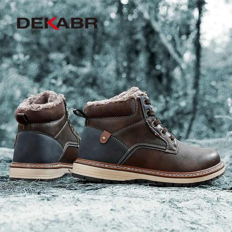 | DEKABR Winter Genuine Leather Men's Boots Thick Fur Warm Ankle Boots Working Men Footwear Waterproof Snow Boots Plus Size 40~47 |