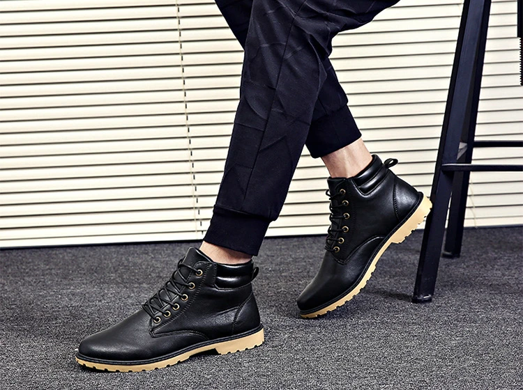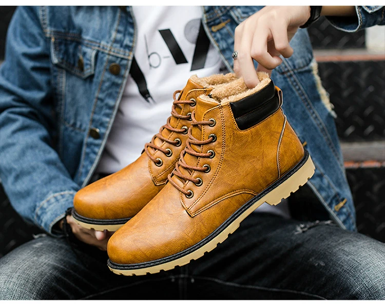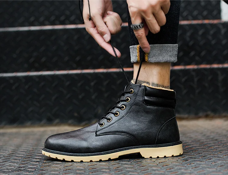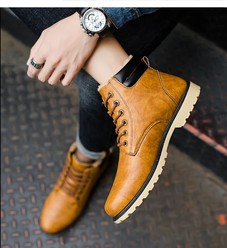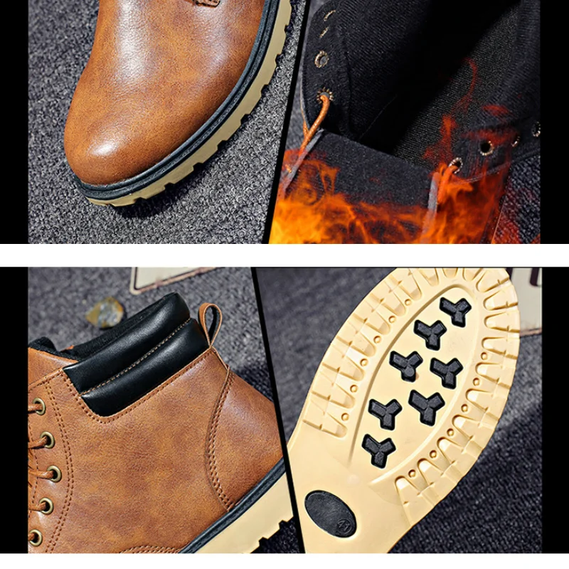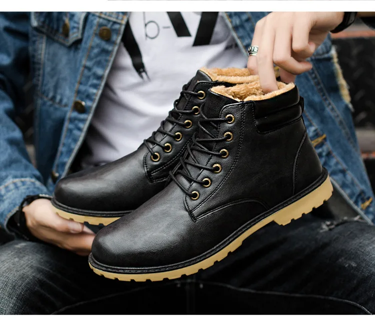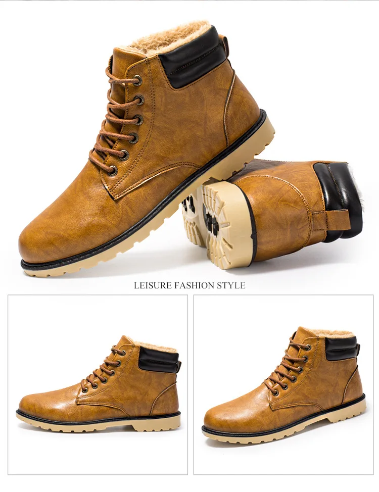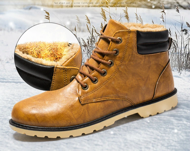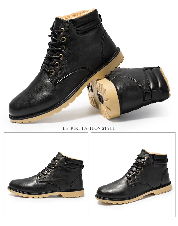 | New Quality PU Men Winter Leather Boots Fashion Short Plush Waterproof Ankle Bootie Male High-tops Shoes Martins Boots Promotion |