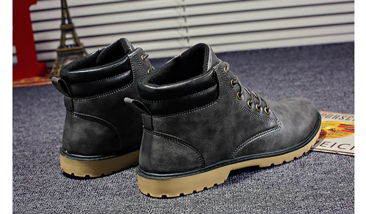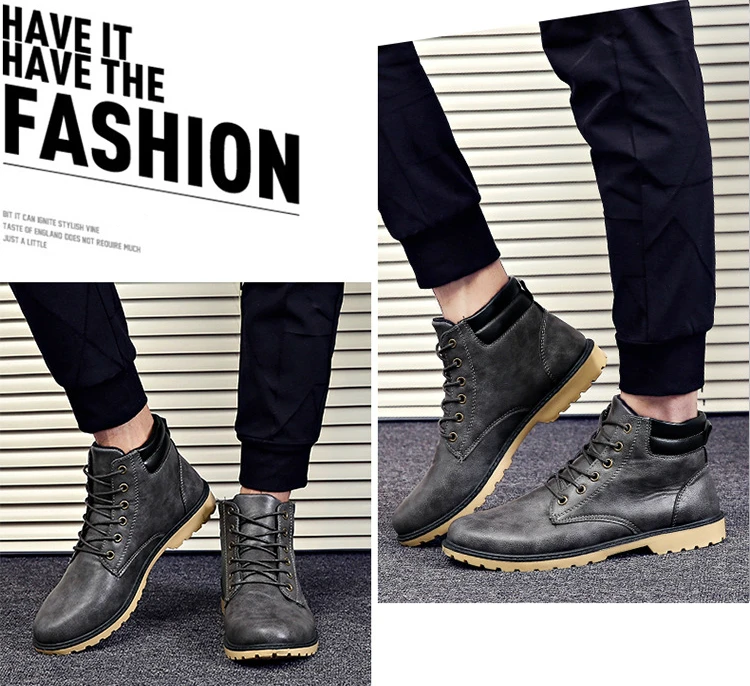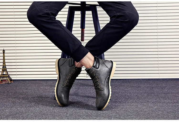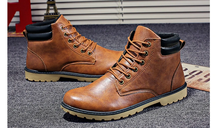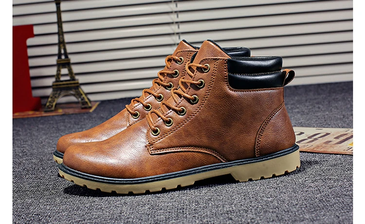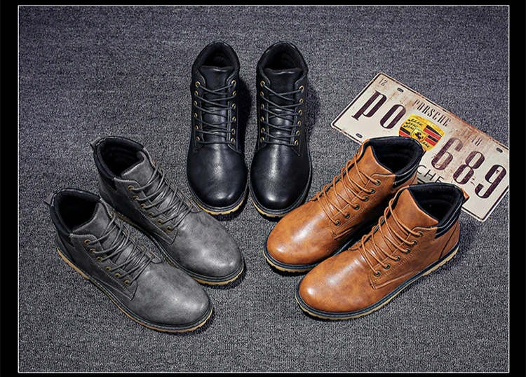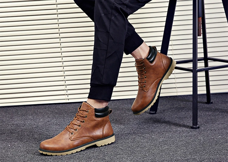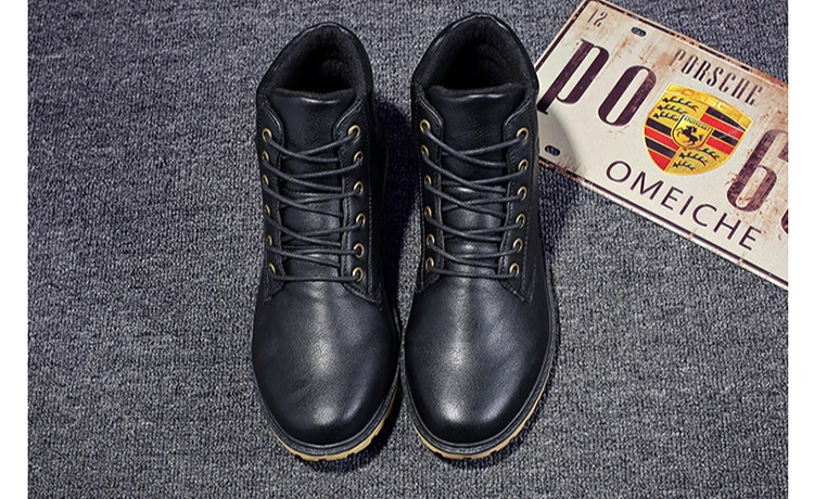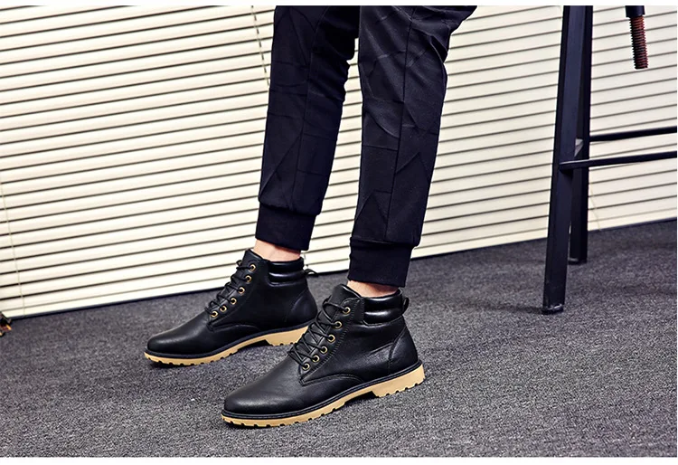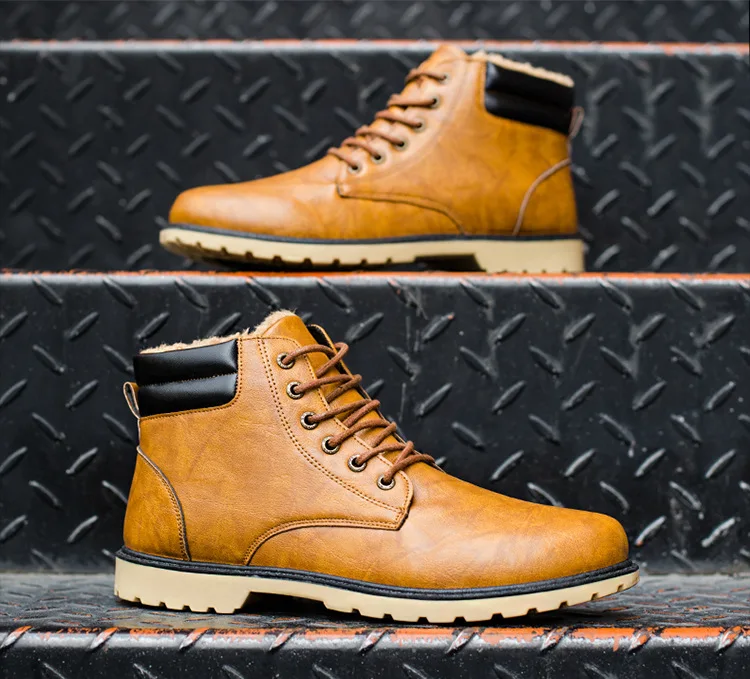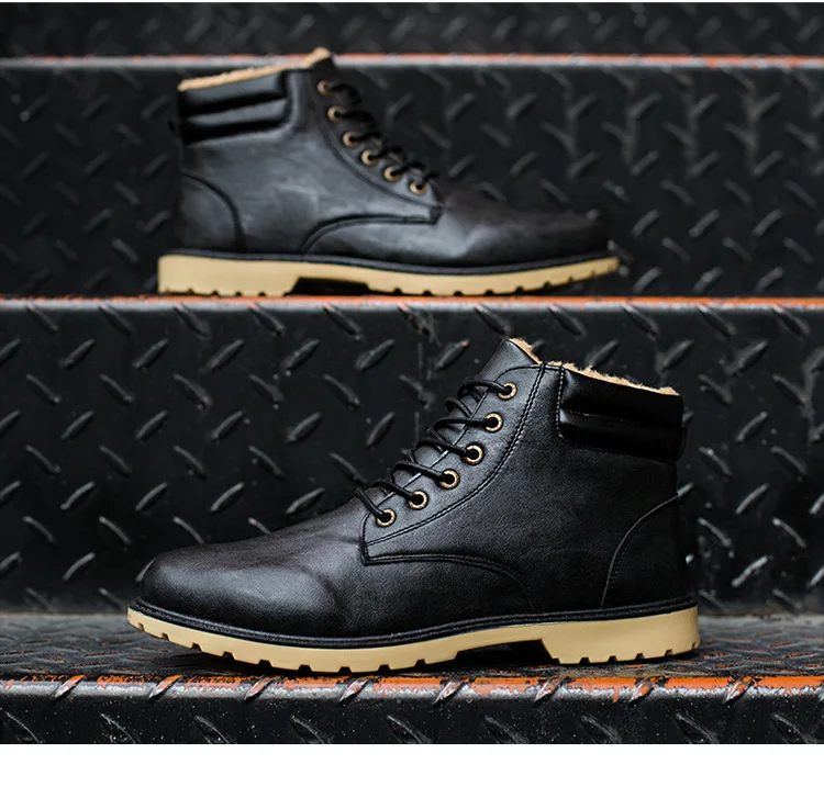 | New Quality PU Men Winter Leather Boots Fashion Short Plush Waterproof Ankle Bootie Male High-tops Shoes Martins Boots Promotion |