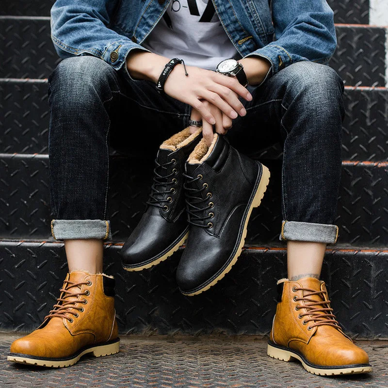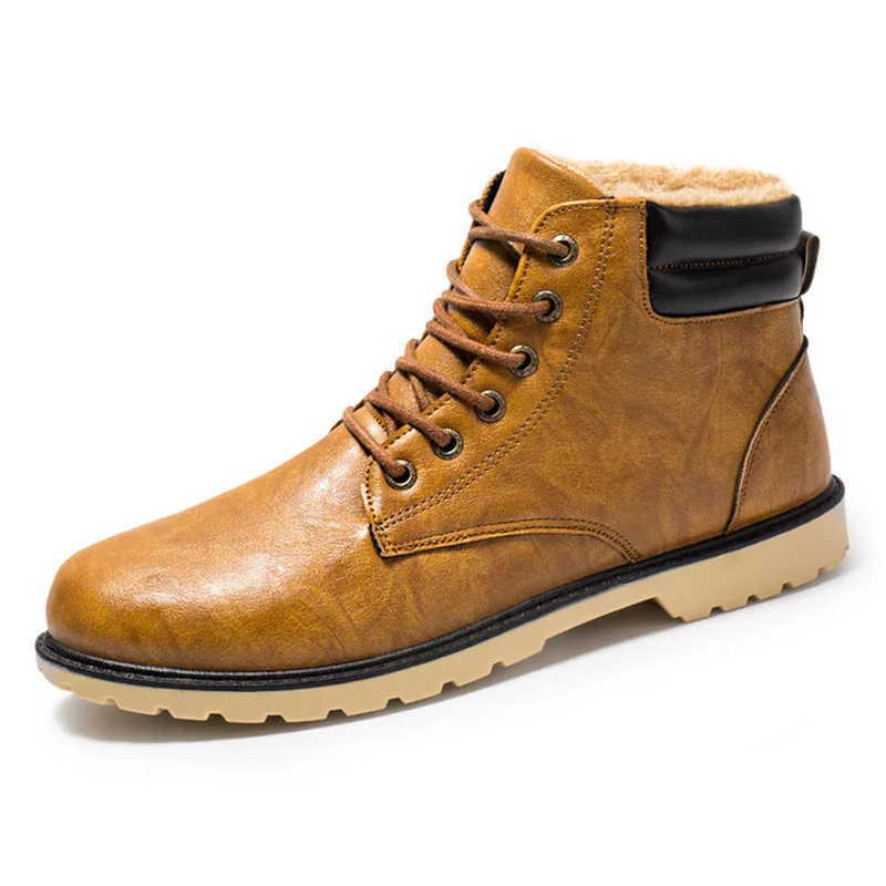 New Quality PU Men Winter Leather Boots Fashion Short Plush Waterproof Ankle Bootie Male High-tops Shoes Martins Boots Promotion