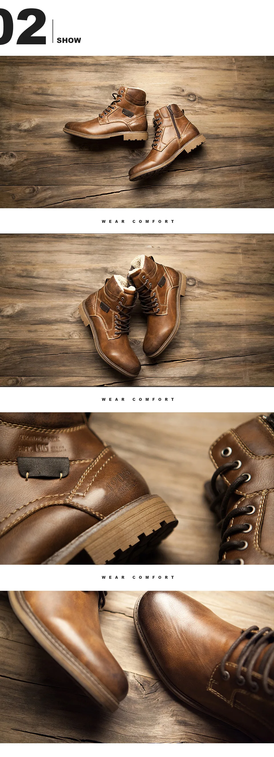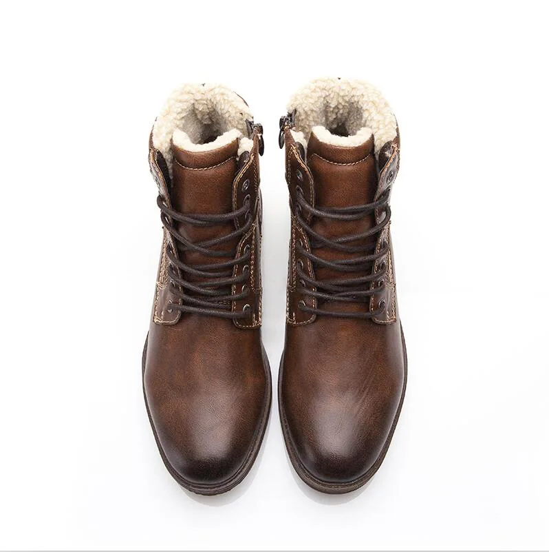 | Men Boots 2020 Winter Lace Up Vintage Plush Keep Warm Ankle Snow Boots Men Footwear Leather Shoes Botas Hombre |