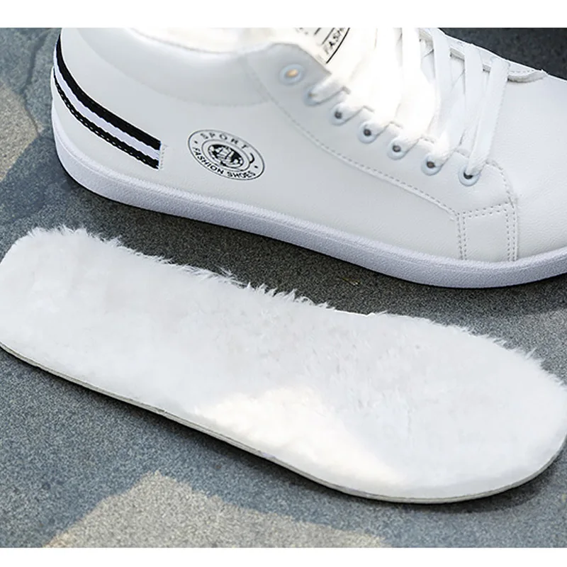 Men's Winter Plush Shoes Boys Comfort Sneakers White Leather Shoes Men High Top Sneakers 2020 Trendy Style Vulcan Boys Shoes