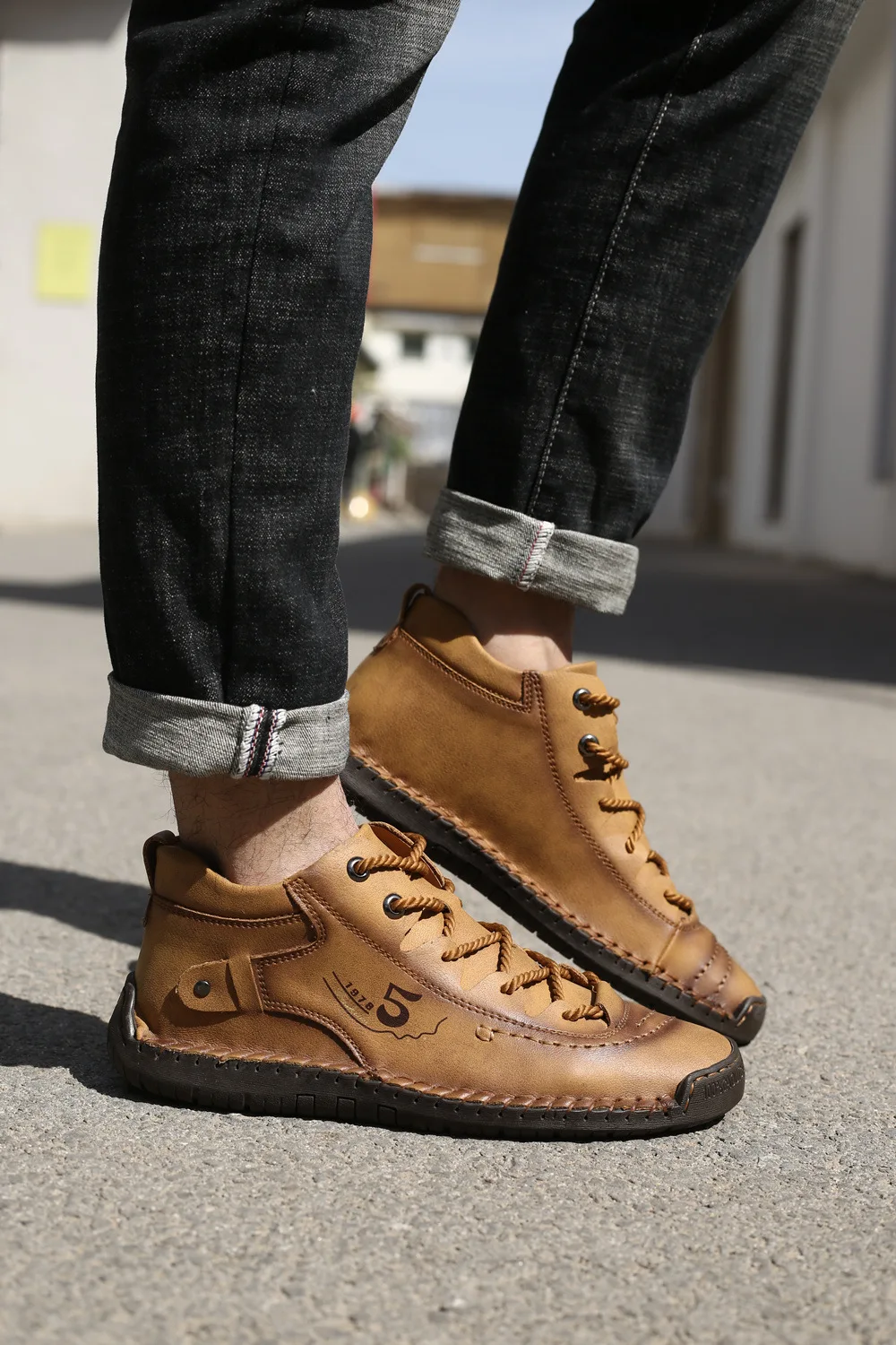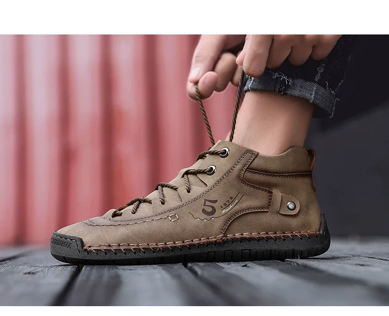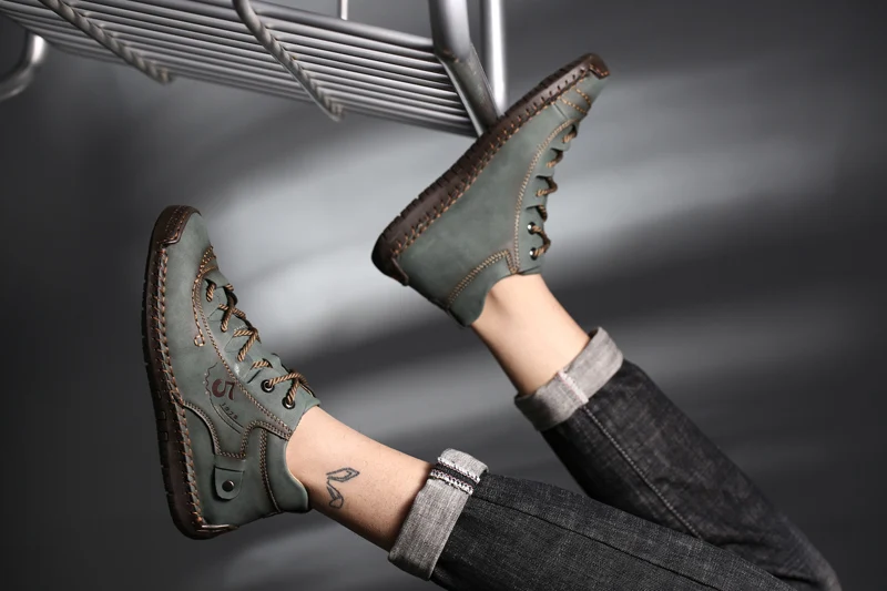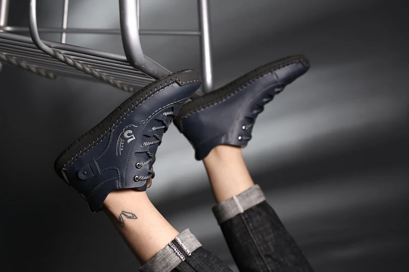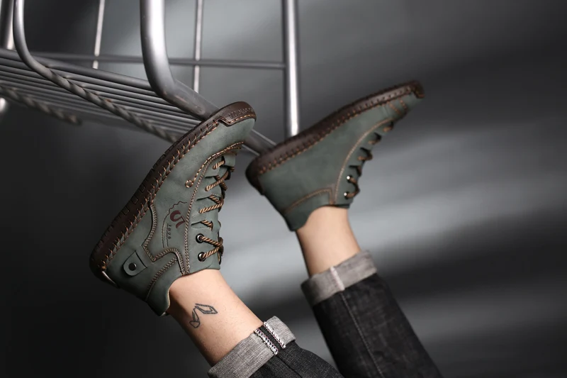 ZYYZYM Men Casual Shoes Leather Shoes Men 2020 Autumn Winter Retro Handwork Fashion British High Man Shoe Large Size 38-48