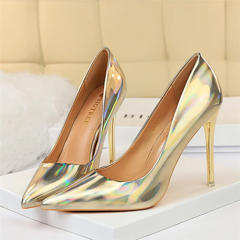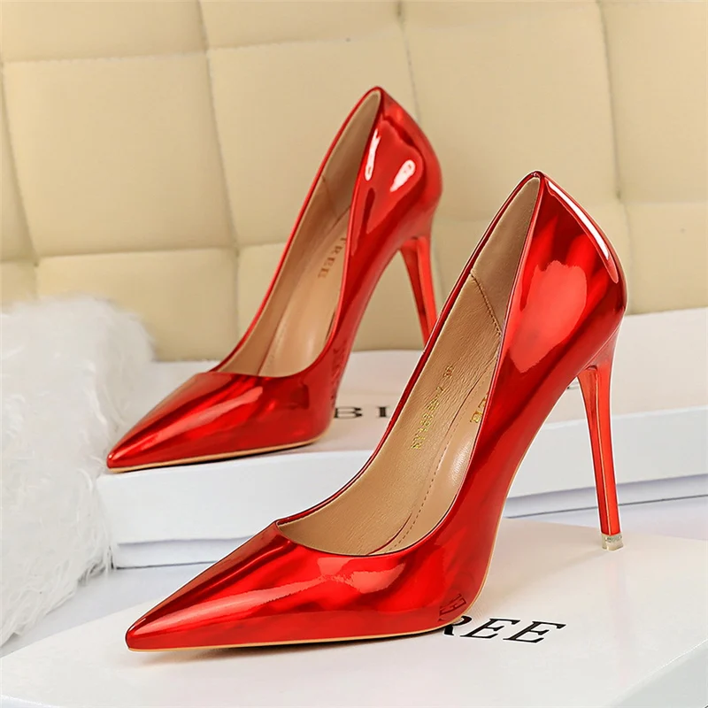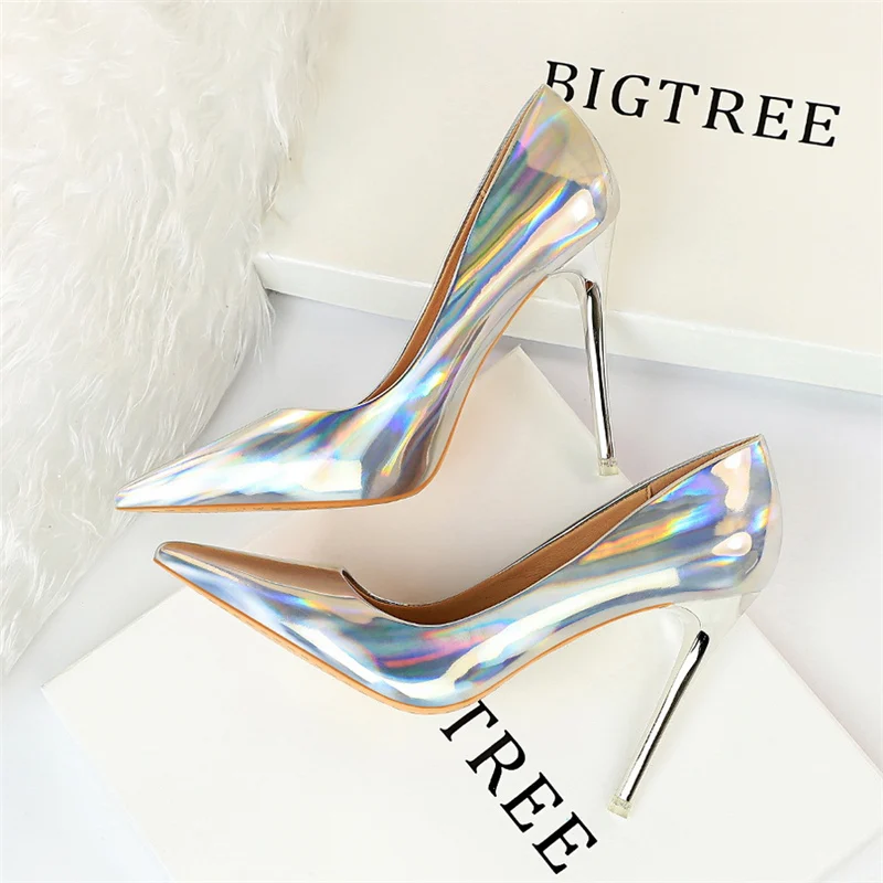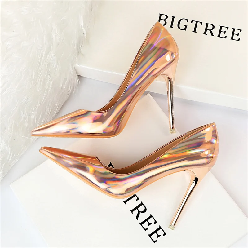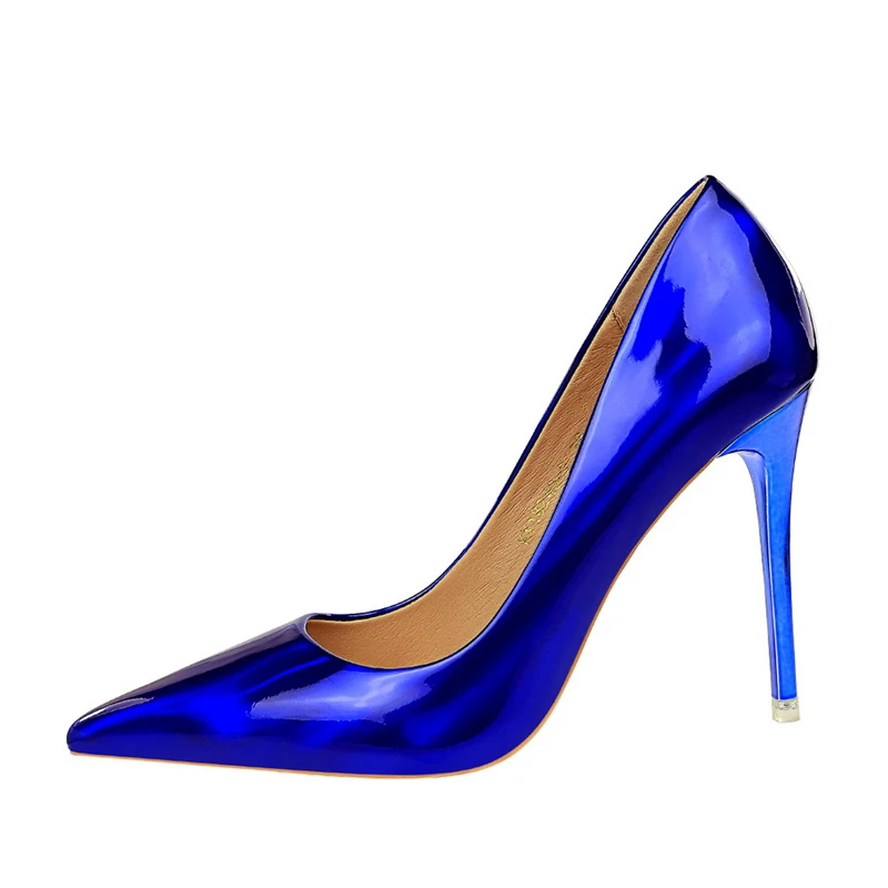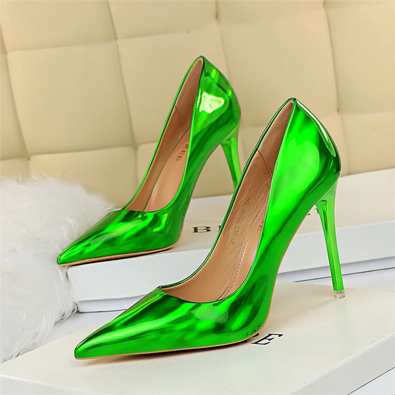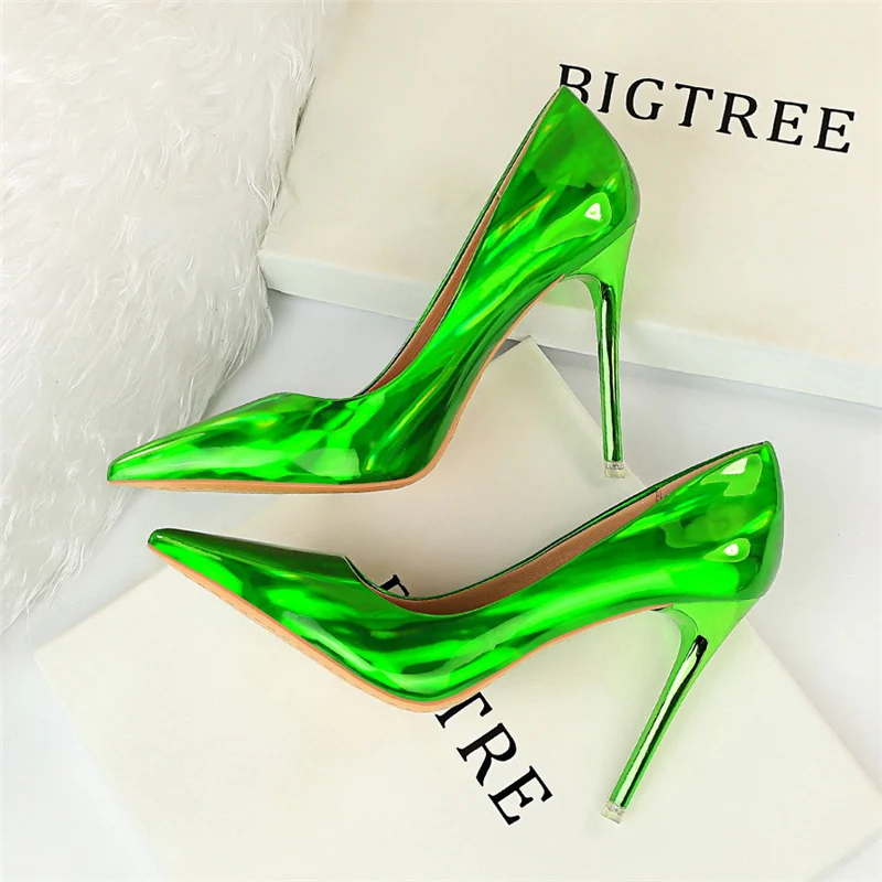 | 2021 Women 10.5cm High Heels Blue Green Valentine Pumps Luxury Glossy Stripper Stiletto Wedding Bridal Fetish Shoes Plus Size 43 |