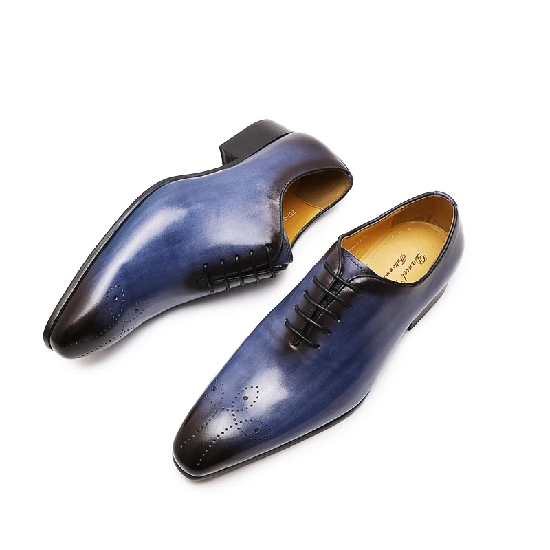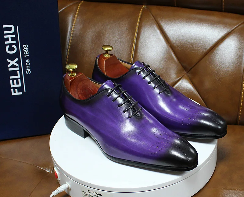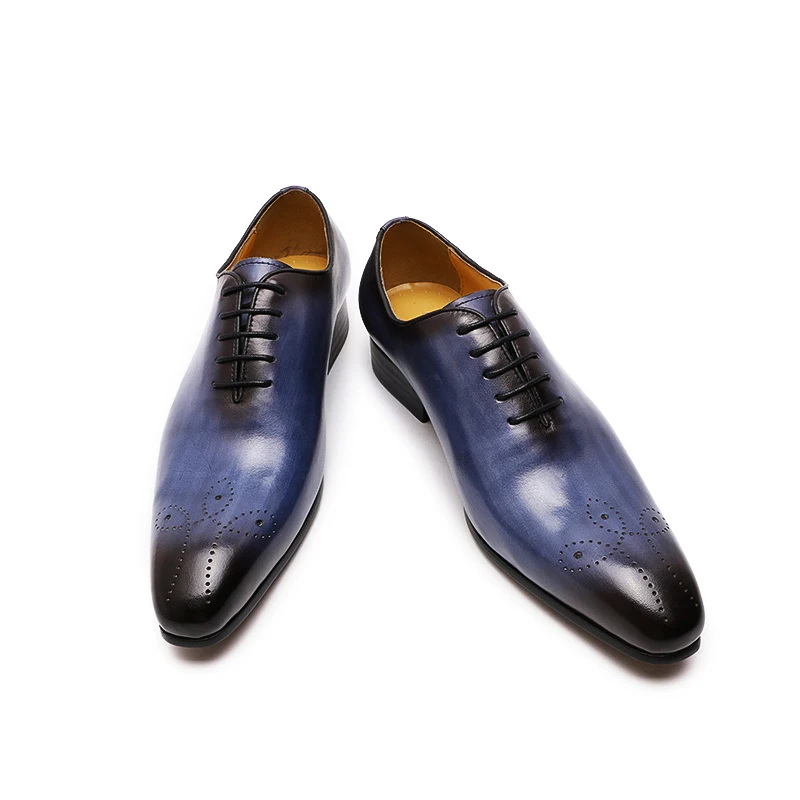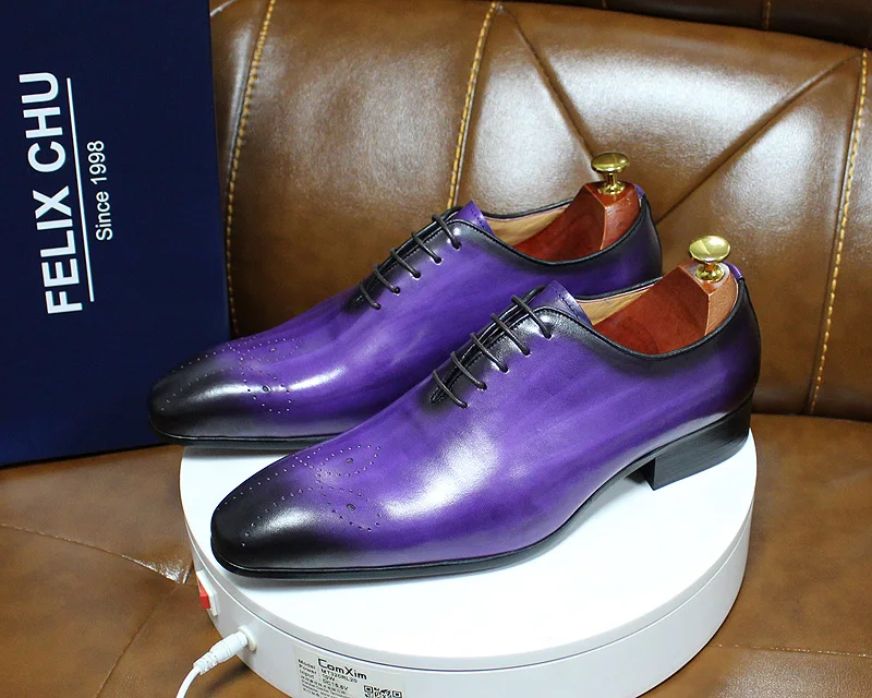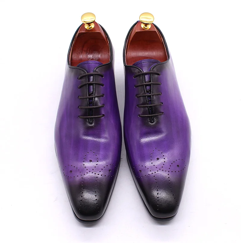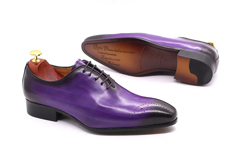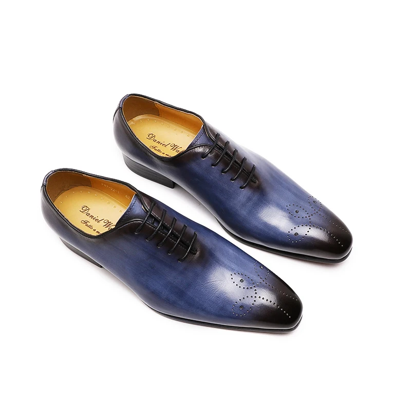 | Daniel Shoes Italian Mens Dress Shoes Genuine Leather Blue Purple Oxfords Men Wedding Shoes Party Whole Cut Formal Shoes for Men |
