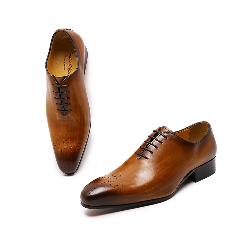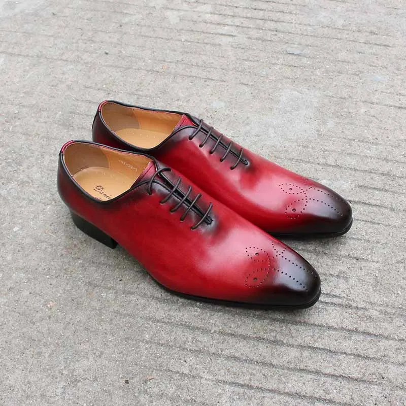 Daniel Shoes Italian Mens Dress Shoes Genuine Leather Blue Red Oxfords Men Wedding Shoes Party Whole Cut Formal Shoes for Men