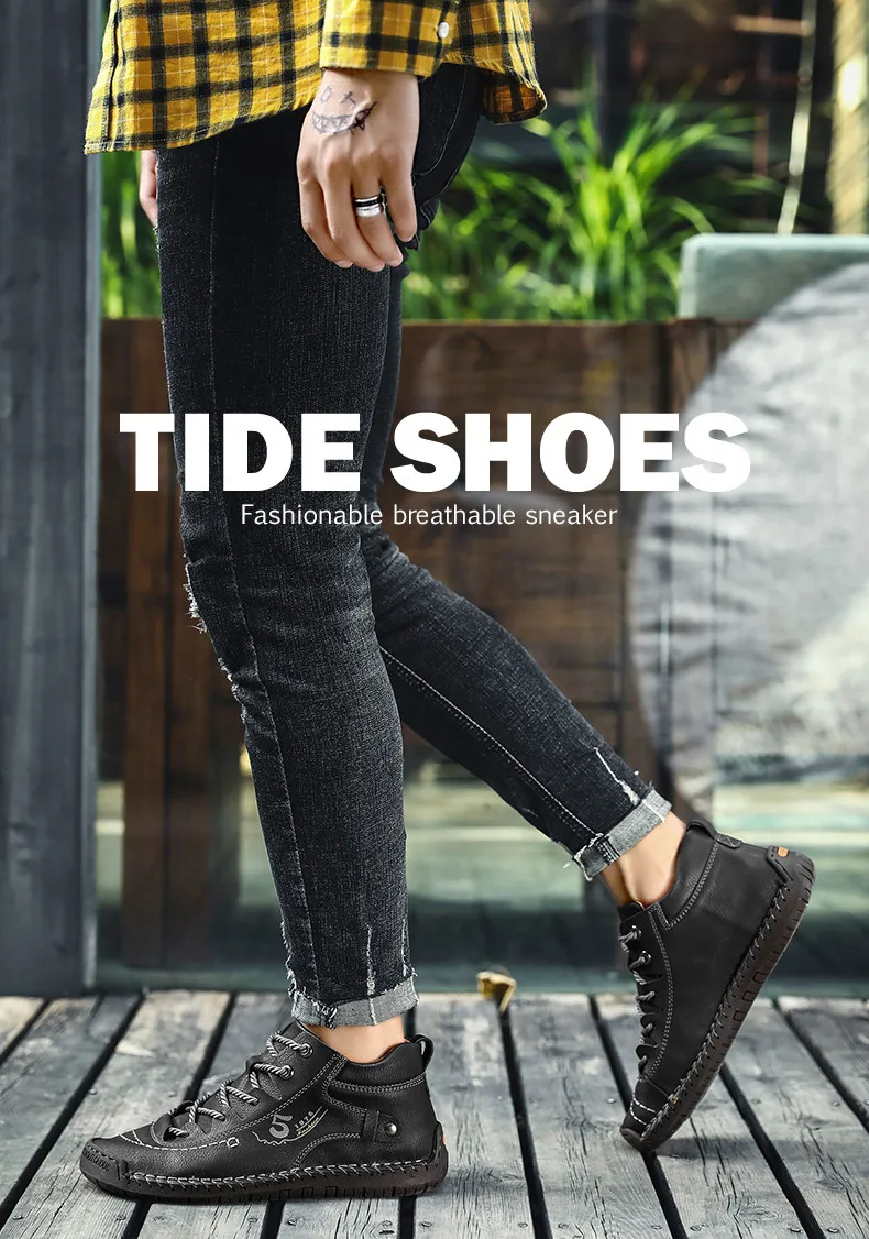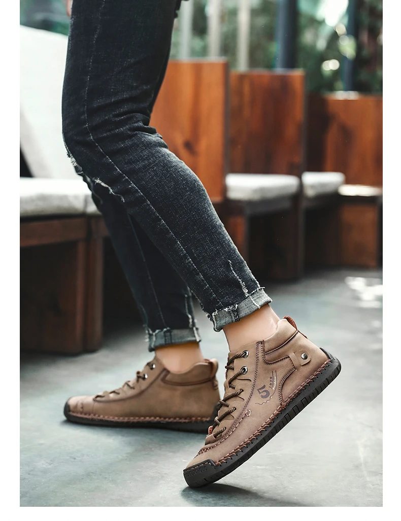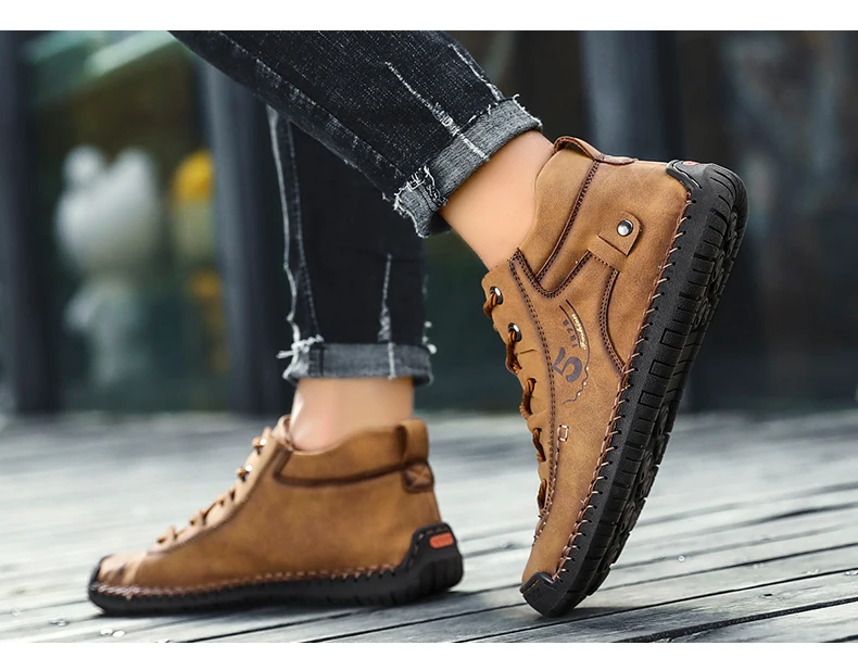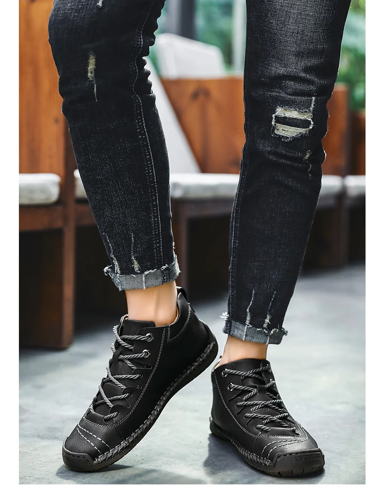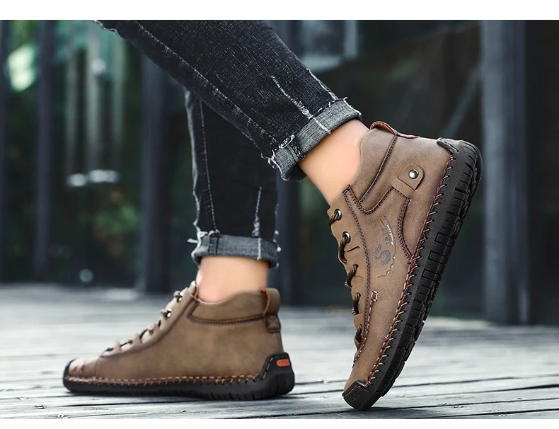 DM43 Leather Men Casual Shoes British Style Comfortable Fashion Walking Shoes Big Size Man Soft Flat Footwear zapatos de hombre**Attention For Russian Friends**