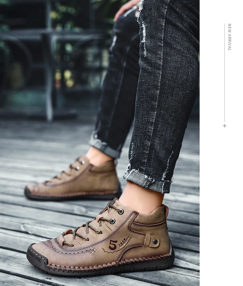 New Quality PU Men Winter Leather Boots Fashion Short Plush Waterproof Ankle Bootie Male High-tops Shoes Martins Boots Promotion