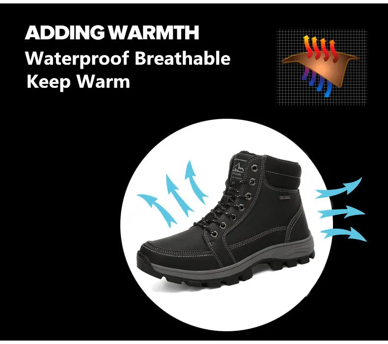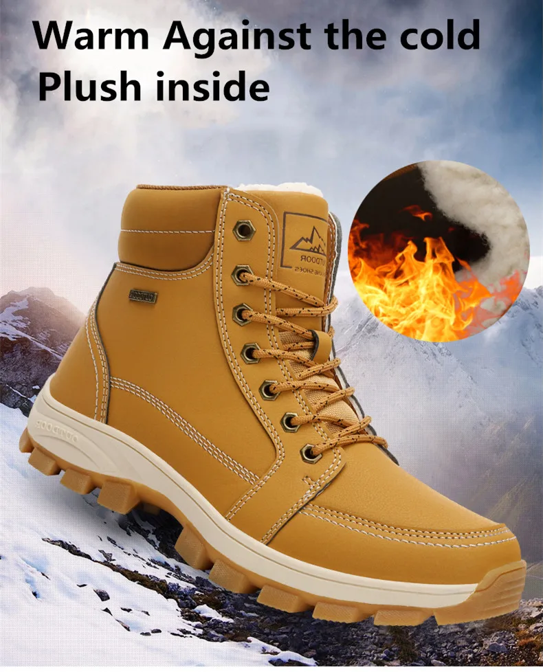 Brand Men Boots Warm Plush Snow Boots Outdoor Non-slip Hiking Boots High-top Waterproof Sneakers Men's Winter Boots Size 40-48Buy Now On Aliexpress