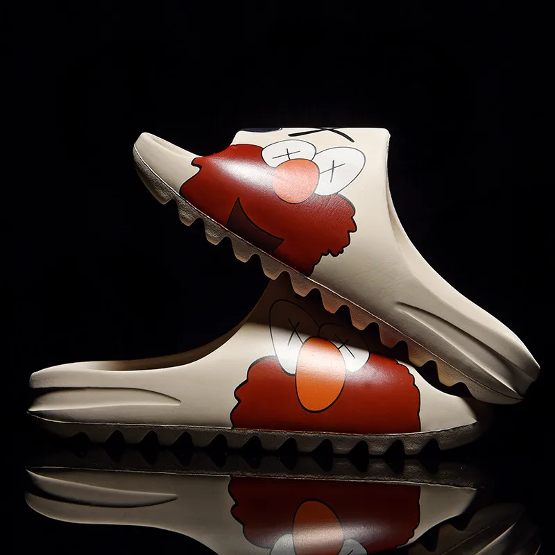 Men's Summer Slides Breathable Cool Beach Sandals Flip Flops Fish Mouth Men & Women Slippers Lightweight Graffiti Big Size 34-46
