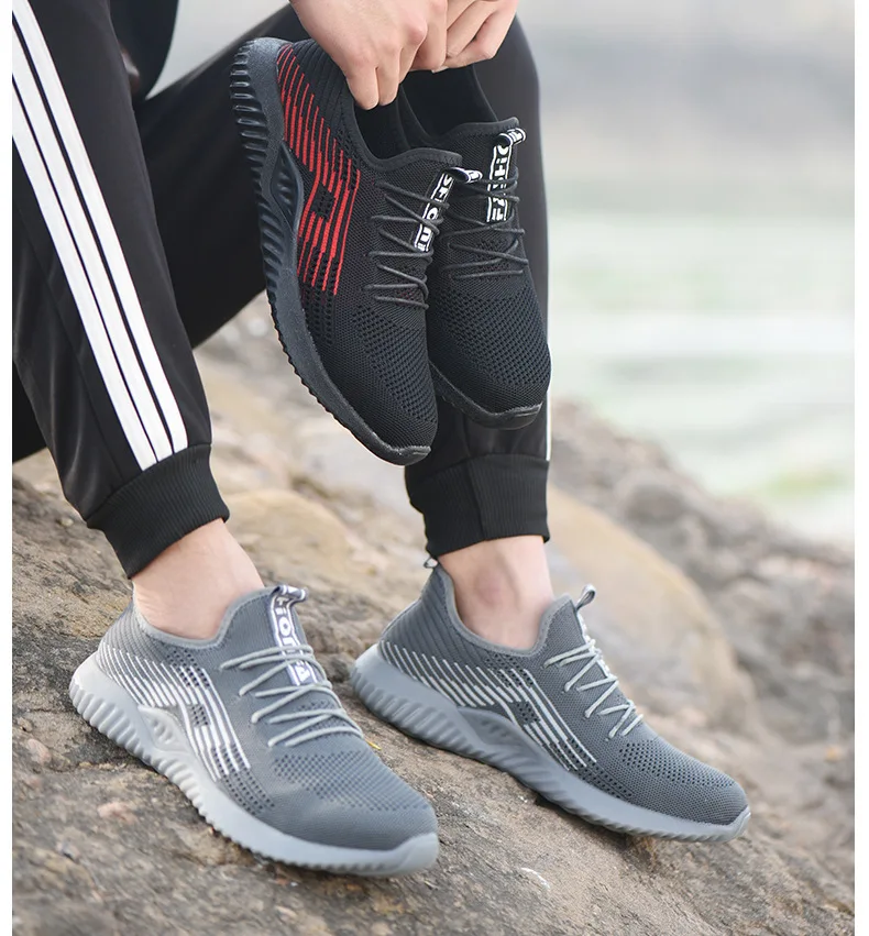 | Men Safety Steel Toe Shoes Mens Air Mesh Fashion Puncture-Proof Boots Lightweight Summer Breathable Work Sneakers Shoe Male |