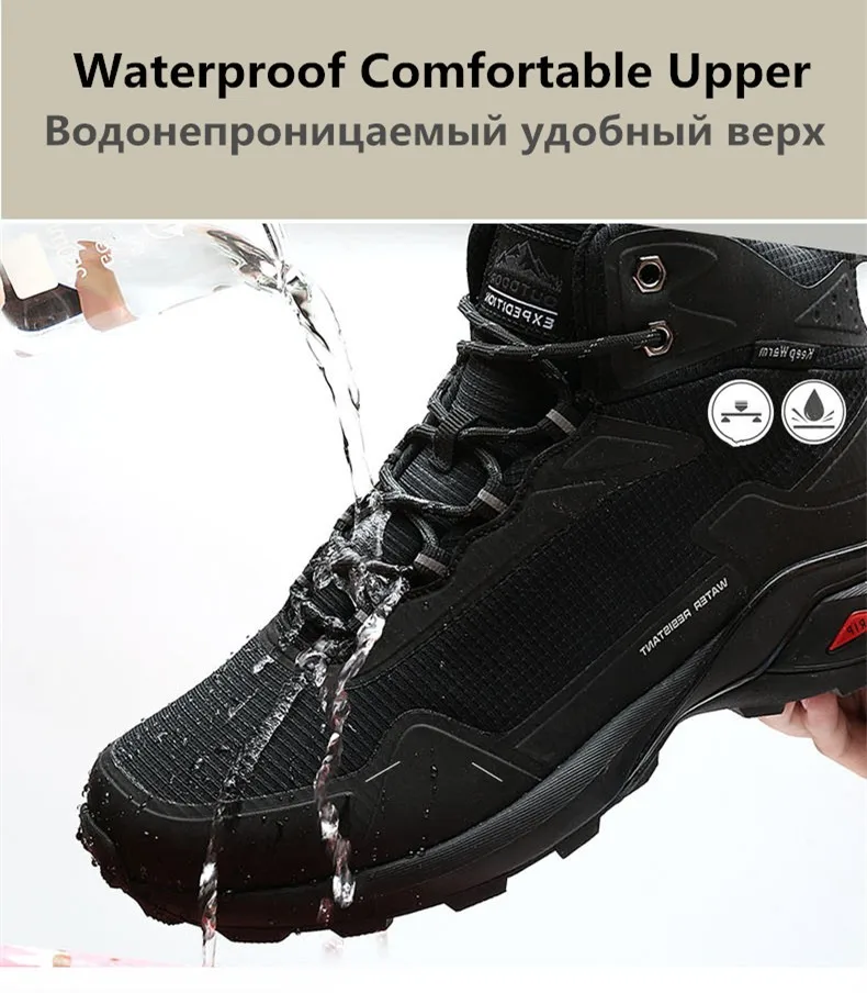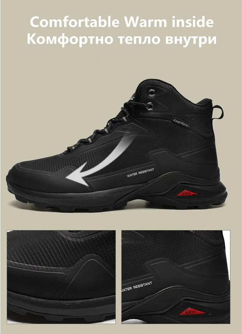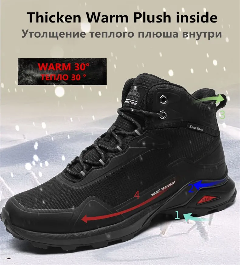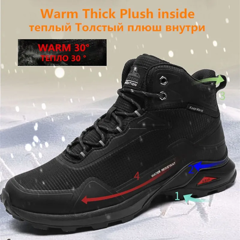 | Brand Men Boots Warm Plush Snow Boots Outdoor Non-slip Hiking Boots High-top Waterproof Sneakers Men's Winter Boots Size 40-48 |