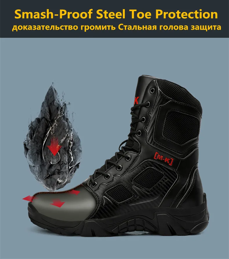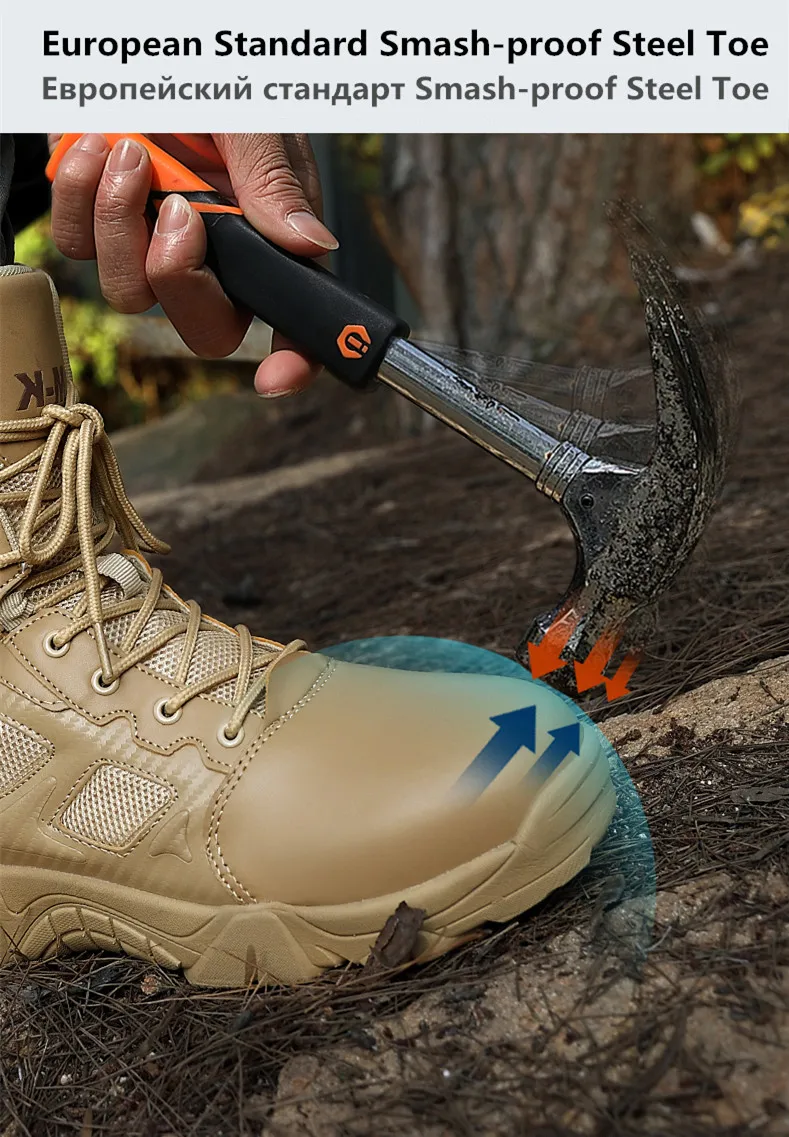All Season Men Safety Work Boots Anti-smashing Steel Toe Cap Men's Boots Military Tactical Waterproof Desert Boot Size 39-47