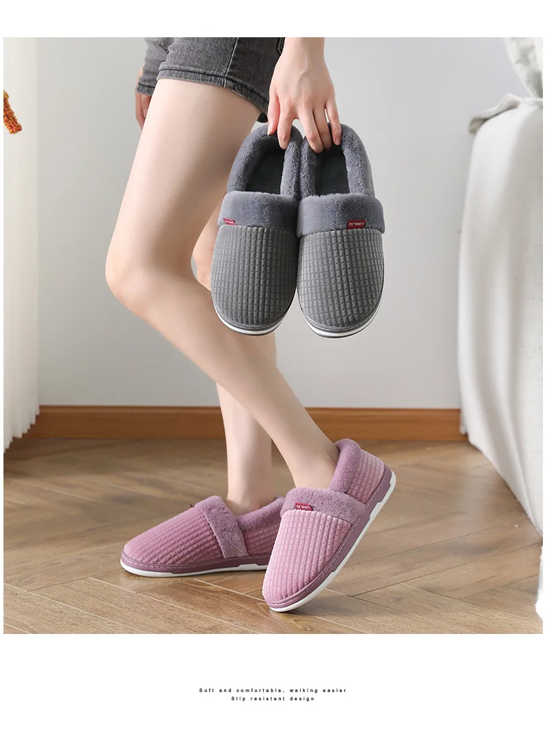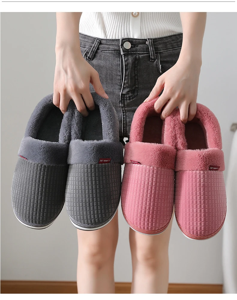 Shoes Male Slippers Winter Home Indoor Slides Non-Slip Thermal Shoe Men New Warm Slippers Gingham Plus Size Chaussure Homme