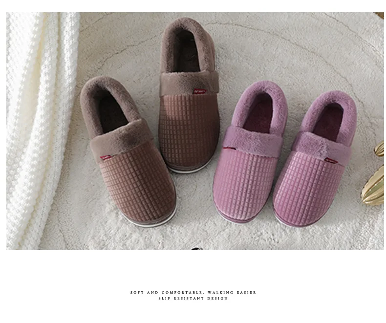 big size 47 Men stripe slippers home warm Plush fluffy winter shoes male Memory Foam Outside wear platform slipper Soft Antiskid